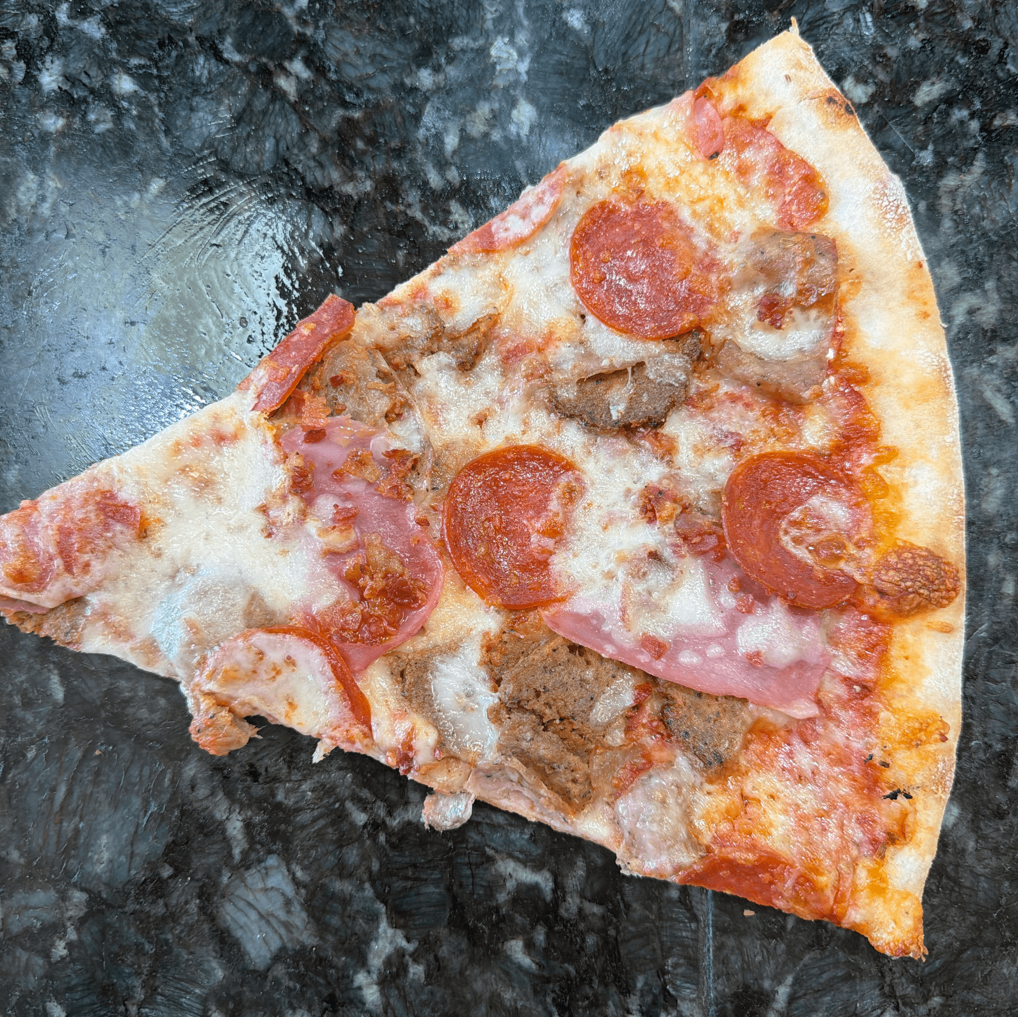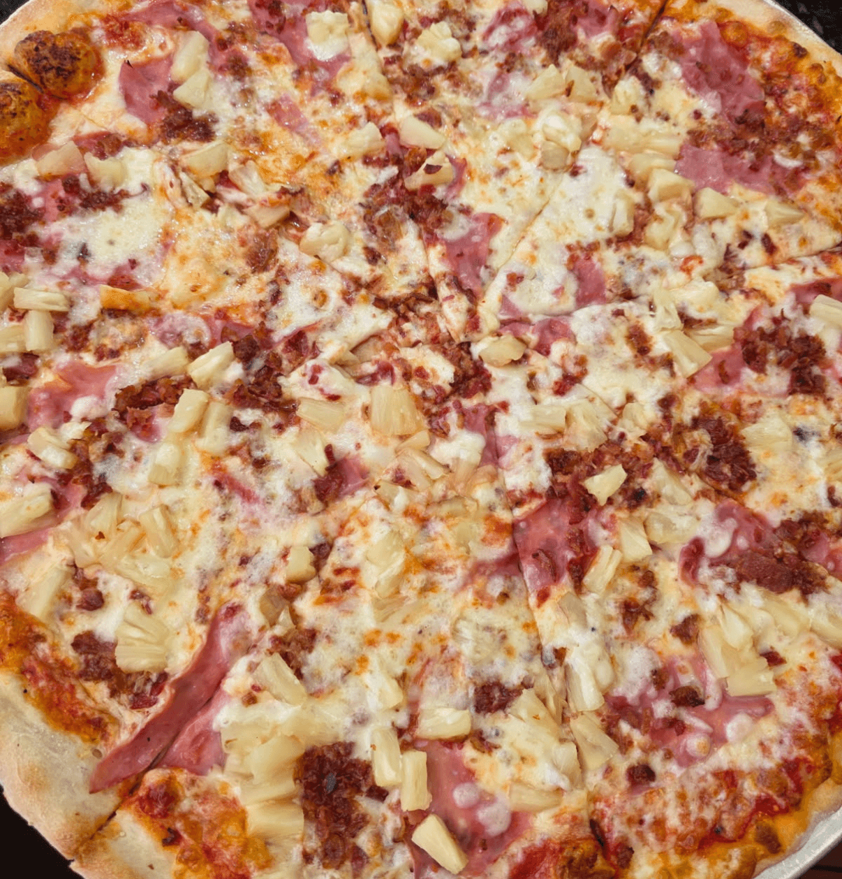 Large 18". Topped with cheese, bacon, ham & pepperoni