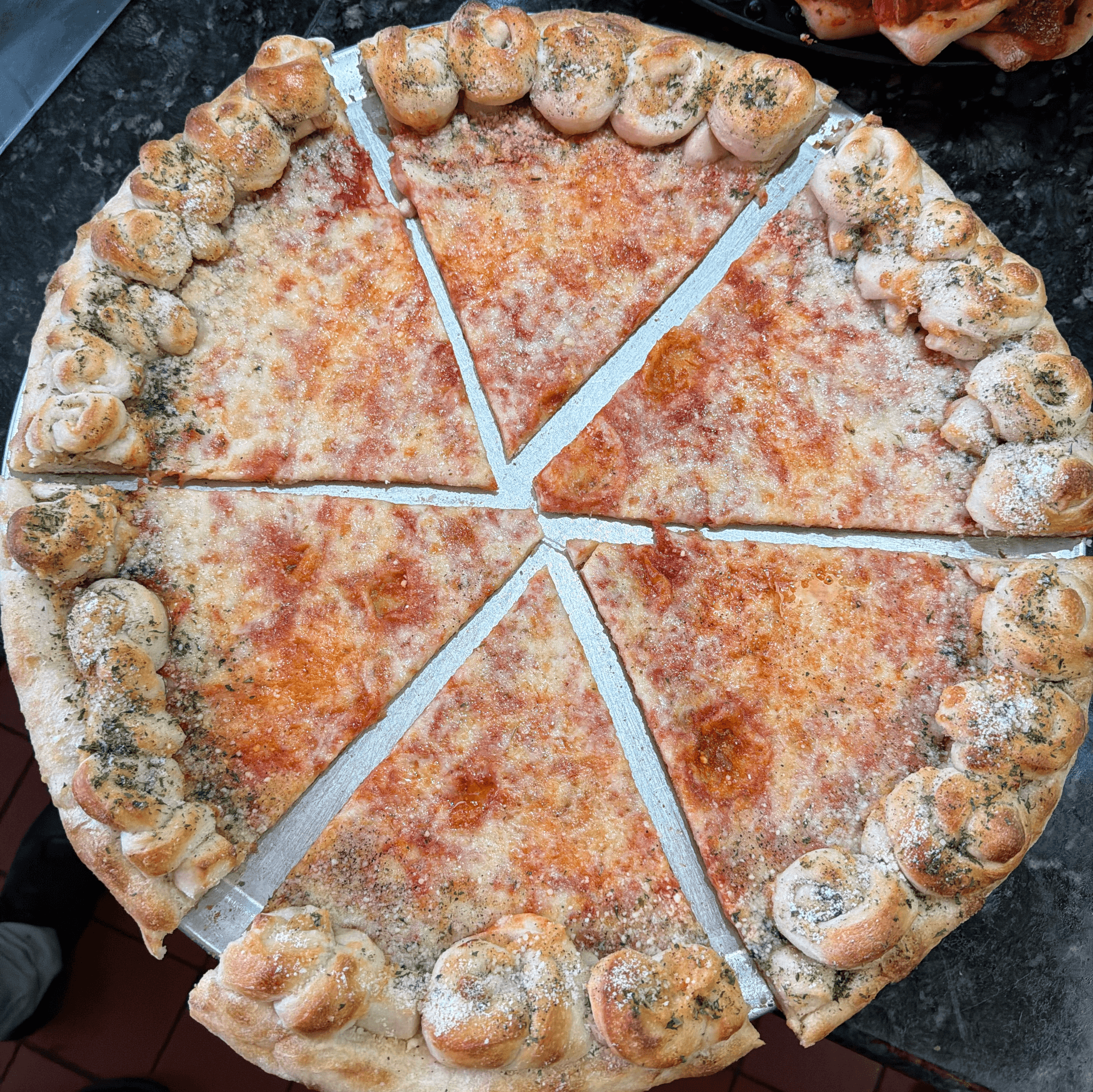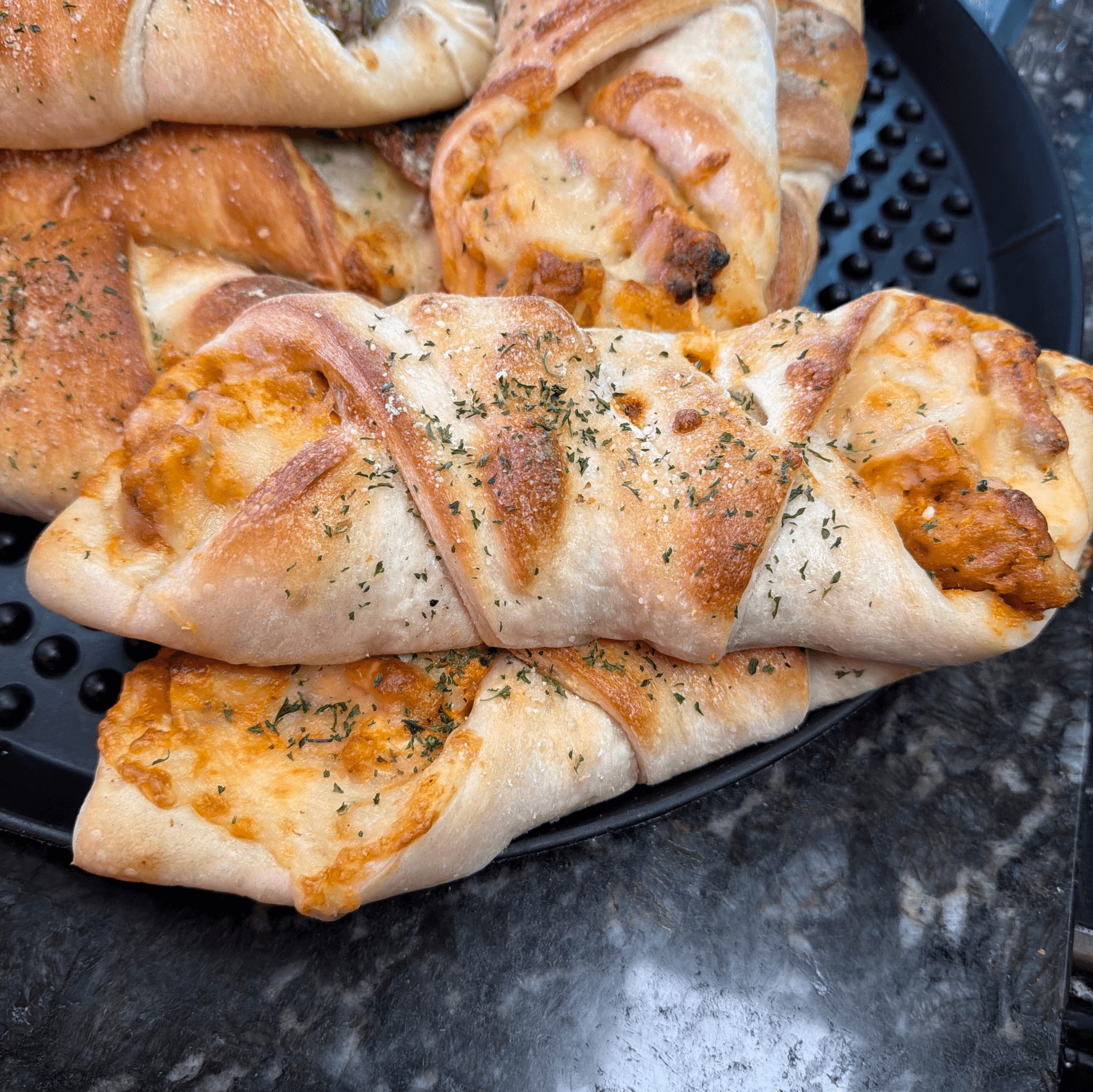 A classic snack, our garlic knots are strips of pizza dough tied in a knot, baked & then topped with melted butter, garlic & parsley